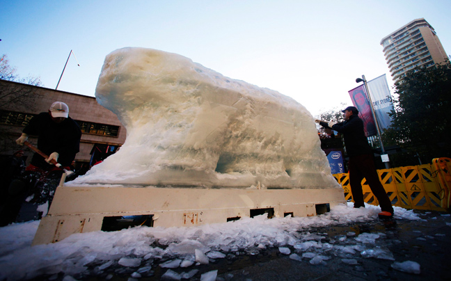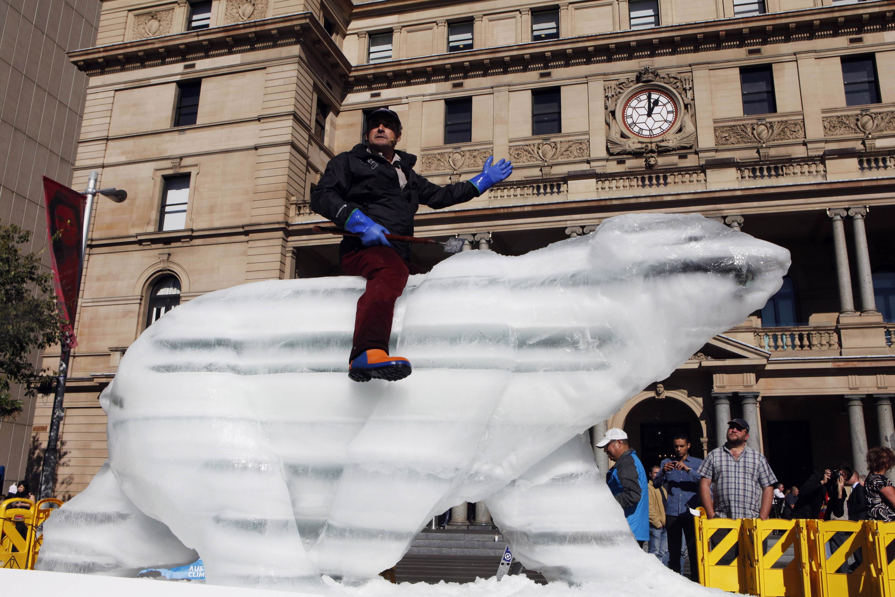 Μία μεγάλη πολιτική αρκούδα έκανε την εμφάνισή της στην περιοχή Circular Quay στο Σίδνεϊ της Αυστραλίας. Πρόκειται για έργο του γλύπτη Mark Coreth ο οποίος απεικονίζεται να ιππεύει την αρκούδα του.