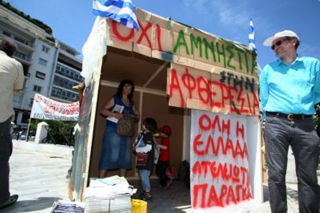 Την παγκόσμια ημέρα για το περιβάλλον τίμησαν με τον δικό τους τρόπο οι Οικολόγοι Πράσινοι, που δημιούργησαν ένα αυθαίρετο κτίσμα από χαρτόνια στην κατειλημμένη από τους «Αγανακτισμένους» πλατεία Συντάγματος, δηλώνοντας και εκείνοι με τη σειρά τους την αγανάκτηση τους με την επικείμενη νομιμοποίηση των αυθαιρέτων κτισμάτων.