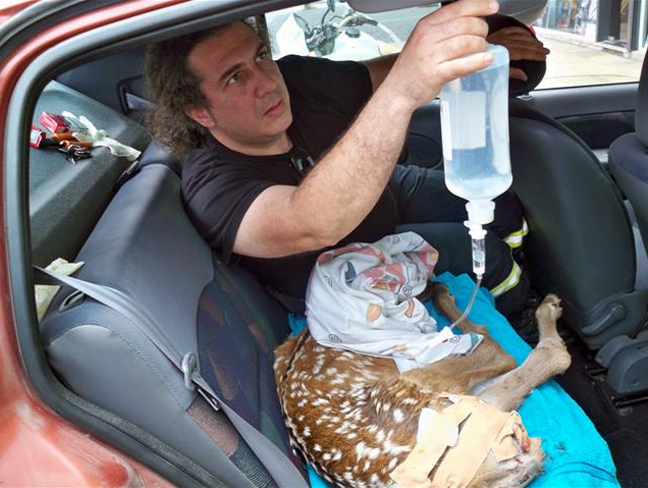 Ένα μικρό αρσενικό ελαφάκι, καταδαγκωμένο από σκύλους, παρέλαβε, έπειτα από ειδοποίηση των υπαλλήλων του Φορέα Διαχείρισης του Εθνικού Δρυμού Πάρνηθας, ο Σύλλογος Προστασίας Άγριας Ζωής ΑΝΙΜΑ.