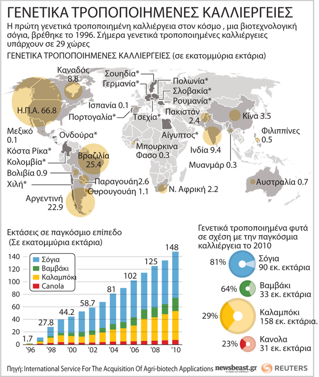 Δεν είναι λίγες οι χώρες που καλλιεργούν μεταλλαγμένα τρόφιμα, οι περισσότερες εκ των οποίων βρίσκονται στην αμερικανική ήπειρο.