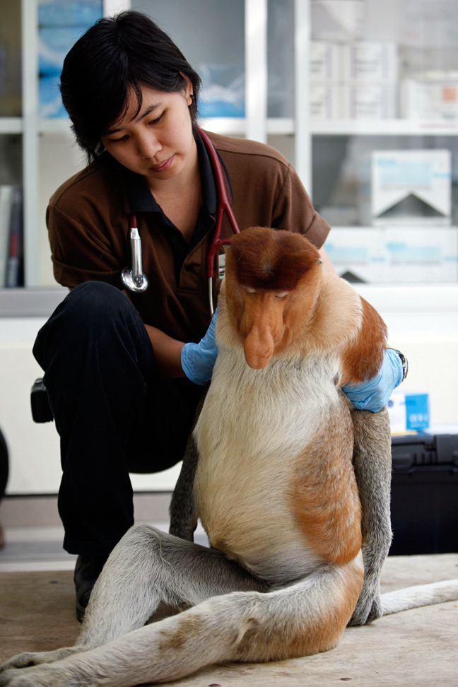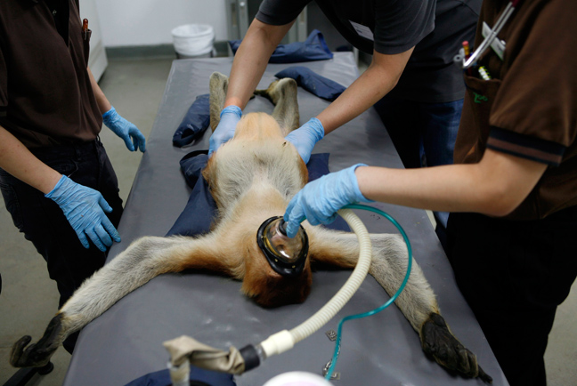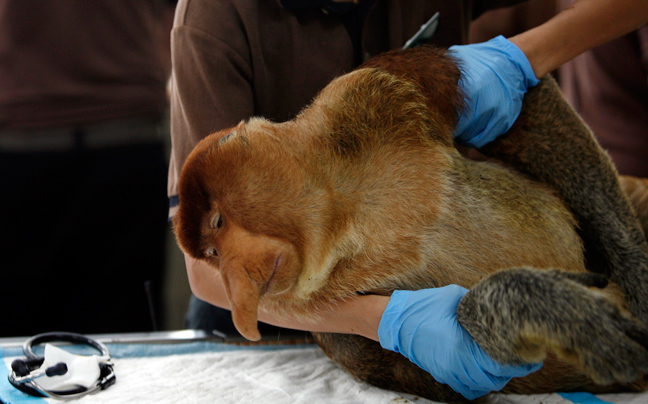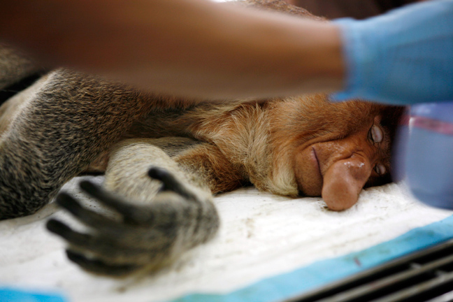 Ο 9χρονος Julau μεταφέρθηκε στο κτηνιατρείο για έναν έλεγχο ρουτίνας, στον Ζωολογικό Κήπο της Σιγκαπούρης. Ναρκωμένος- για προφανείς λόγους- ο νεαρός πίθηκος Proboscis- με τη χαρακτηριστική μύτη-προβοσκίδα- υπεβλήθη σε όλες τις απαραίτητες εξετάσεις και ένα πλήρες τσεκ απ καθώς πρόκειται να σταλεί στο Πάρκο Apenheul στην Ολλανδία, συμμετέχοντας σε μία ανταλλαγή ζώων που θα σηματοδοτήσει την έναρξη προγράμματος εκτροφής σε αιχμαλωσία.