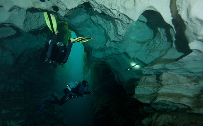 Στο σημείο που το έχουν ονομάσει «Καθεδρικό Ναό», τα τείχη του είναι καλυμμένα με φύκια και τα νερά είναι τόσο καθαρά που μπορείς να κοιτάξεις από βάθος 30 μέτρων στον ουρανό και να καταφέρεις να διακρίνεις σύννεφα.