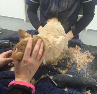 Η Faye πήγε αμέσως στο κτηνιατρείο όπου ξύρισαν όλο το τρίχωμα της γάτας για να την απαλλάξουν από το τσιμέντο.