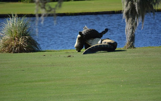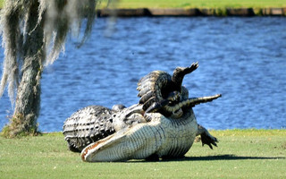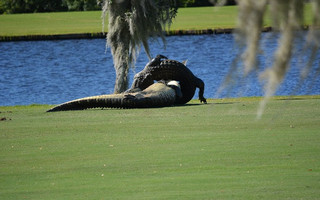 Εμβρόντητοι όσοι έπαιζαν γκολφ στο γήπεδο της περιοχής Myakka Pines στη Φλόριντα σταμάτησαν το παιχνίδι τους και παρακολουθούσαν με το στόμα ανοιχτό- και με τον απαραίτητο φόβο- δύο αλιγάτορες που πάλευαν με σθένος.