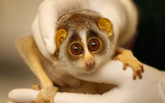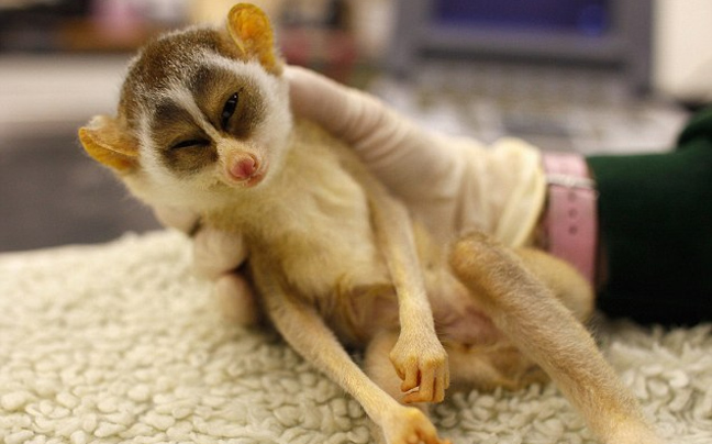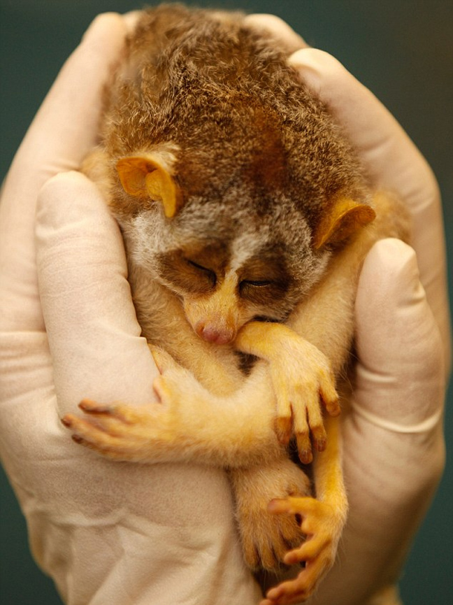 Αυτό το μικρό πρωτεύον θηλαστικό ανήκει στην οικογένεια των strepsirrhine και η κοινή του ονομασία είναι slender loris… και όπως φαίνεται και στις φωτογραφίες τα χέρια του κτηνίατρου ήταν ένα καλό μέρος για έναν υπνάκο… που όμως δεν κράτησε πολύ!
