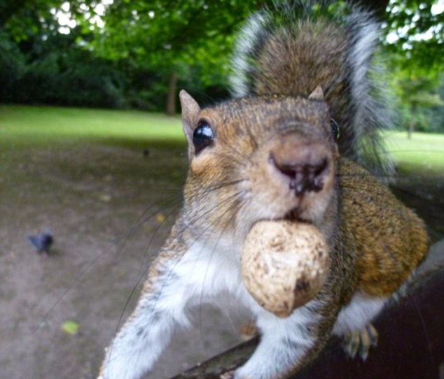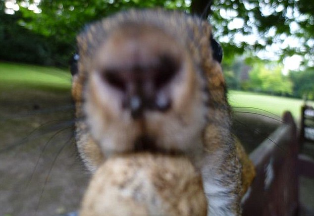 Ο… ματαιόδοξος σκίουρος δεν είχε καμία αναστολή και πλησίαζε χωρίς φόβο… και με πολύ πάθος το φωτογραφικό φακό, ποζάροντας μαζί με τη λιχουδιά του!