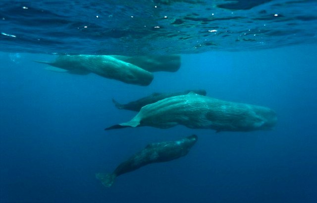 Οι ενήλικες φάλαινες, από την άλλη, τρέφονται σχεδόν αποκλειστικά από καλαμάρια, τα οποία για να κυνηγήσουν θα πρέπει να καταδυθούν σε μεγάλα βάθη. Τα νεογνά δεν είναι θέση να τους ακολουθήσουν και εδώ είναι από πού αναλαμβάνουν δράση τα γηραιότερα θηλυκά μέλη των κοπαδιών. Παρόμοιες ενέργειες και κοινωνική σύσταση συναντάμε μόνο και στους ελέφαντες, ανάμεσα στα πρωτεύοντα θηλαστικά.