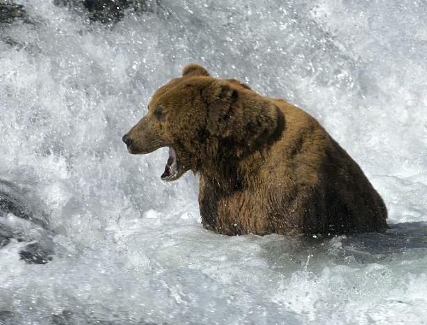 Απελπίστηκε τόσο πολύ στην προσπάθεια της να πιάσει έναν σολωμό για να εξασφαλίσει την τροφή της που την πήρε ο ύπνος. Ο λόγος για μια καφέ αρκούδα στη Νότια Αλάσκα που αποκοιμήθηκε στο χείλος ενός μίνι καταρράκτη χρησιμοποιώντας για μαξιλάρι τα χέρια της.