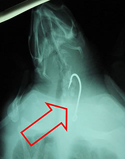 Λίγες ημέρες μετά, η ακτινογραφία που έγινε στην «Αρσίδα» αποκάλυψε ένα αγκίστρι από παραγάδι το οποίο και αφαίρεσε η κτηνίατρος του Κέντρου. Η εξέλιξη της παρακολουθείται στενά από τους ειδικούς του Κέντρου μιας και είναι άγνωστο προς το παρόν πως θα αντιδράσει ο οργανισμός της στις ποσότητες πλαστικού από την μεσινέζα που είχε καταπιεί. Ευελπιστούμε ότι θα μπορέσει να αποβάλλει το ξένο σώμα από μέσα της και να αναρρώσει πλήρως.