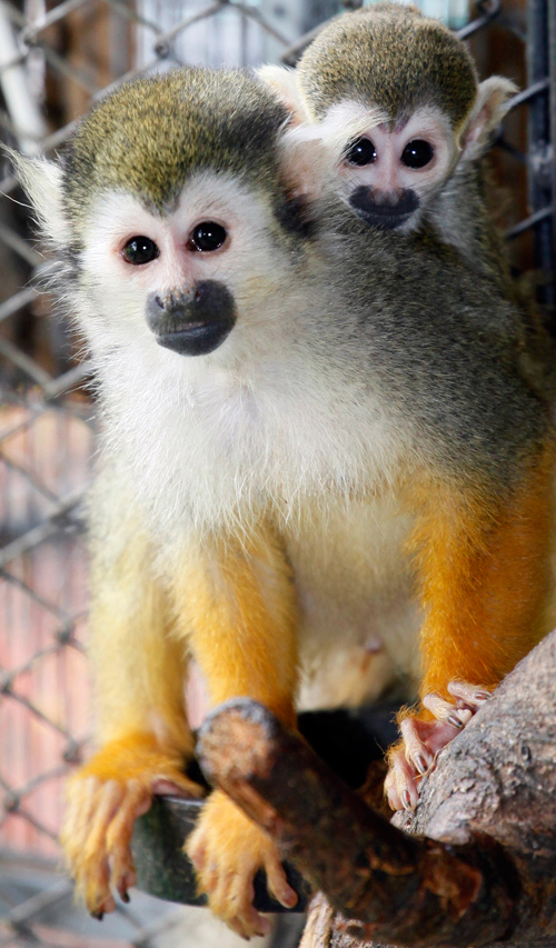 Η εικονιζόμενη Μάσα είναι σκιουρόμορφο σαϊμίρι και βγάζει βόλτα το μόλις ενάμιση μηνός μικρό της στο Ζωολογικό Κήπο Royev Ruchey στο Κράσνογιαρσκ της Ρωσίας.