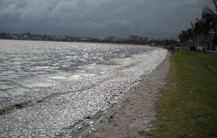Εκατοντάδες νεκρά ψάρια επιπλέουν στις όχθες της λίμνης Araruama, στην περιοχή Região dos Lagos στη Βραζιλία.