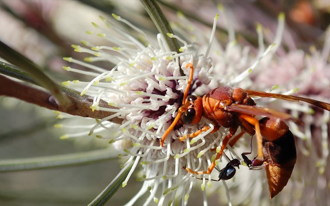 Αυτή είναι μία από τις φωτογραφίες που το «κλικ» συντονίζεται με τρόπο θαυμαστό με τη φύση. Ο φακός πρόλαβε την επίθεση ενός μυρμηγκιού κατά ενός πολύ μεγαλύτερου εκπροσώπου του είδους του. Μήλος της έριδος η τροφή από το εικονιζόμενο λουλούδι.