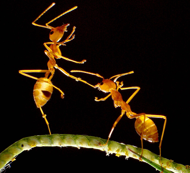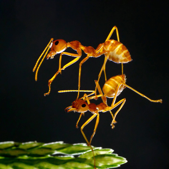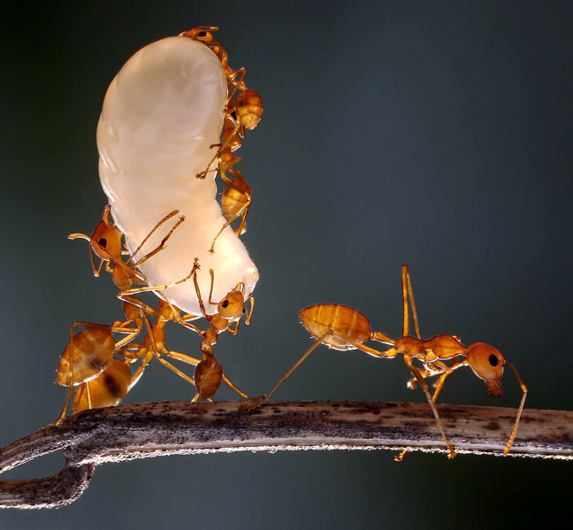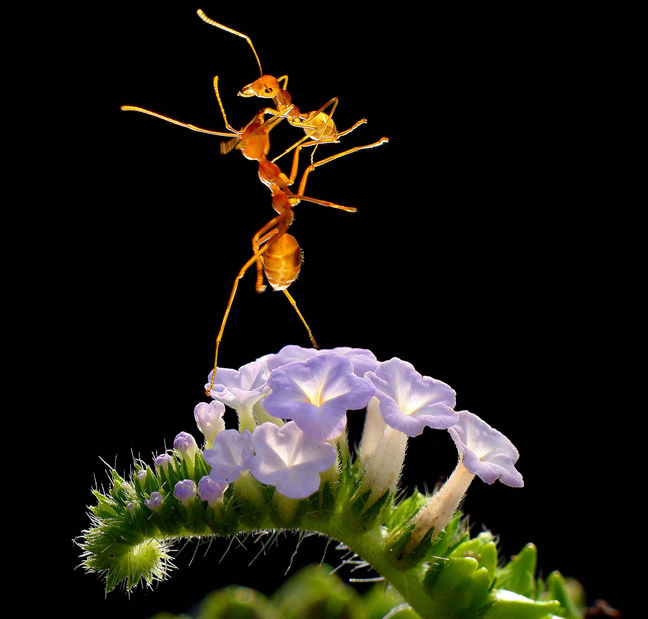 Ένα μυρμήγκι σηκώνει με τα πόδια του ένα μικρότερο ψηλά πάνω από το κεφάλι του σα να χορεύει. Αυτή είναι μία από τις χιλιάδες φωτογραφίες που τράβηξε ο φωτογράφος Adegsm ( το πραγματικό του όνομα είναι Thanh Ta Quang) για να καταλήξει σε μερικές που τελικά τον ικανοποιούσαν.