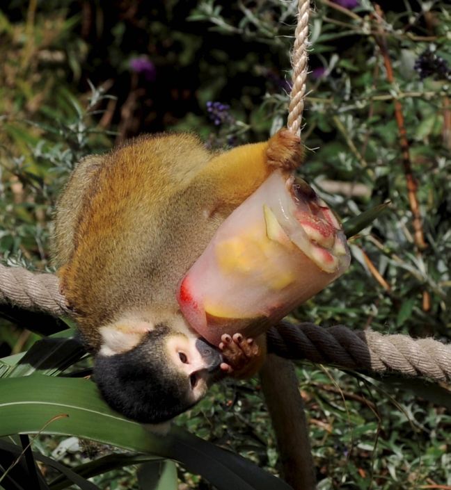 «Το συγκεκριμένο είδος προέρχεται από τη Νότια Αμερική και είναι συνηθισμένα μεν στις υψηλές θερμοκρασίες, αλλά εμείς σκεφτήκαμε ότι αυτή η παγωμένη λιχουδιά θα τα βοηθούσε να δροσιστούν λιγάκι! Είναι απλά φρούτα, όπως φράουλες και ανανάς σε παγωμένο νερό. Τα πιθηκάκια τις λατρεύουν και εκτός από δροσιά τα κρατά και απασχολημένα κατά τη διάρκεια της ημέρας» είπε ένας υπάλληλος του πάρκου.