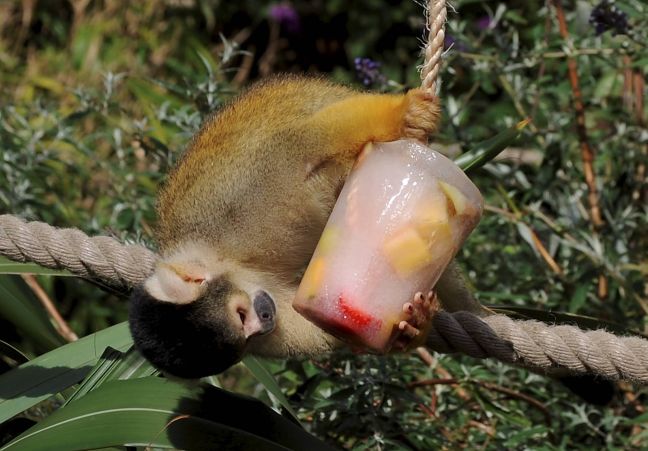 Οι υπεύθυνοι του ζωολογικού κήπου at Chessington World of Adventures Resort στο Surrey αποφάσισαν να δώσουν ένα… «φρουτένιο παγωτό» στα πιθηκάκια που φιλοξενούν, για να μπορέσουν να αντέξουν τις εξαιρετικά υψηλές για την εποχή θερμοκρασίες που επικρατούν αυτές τις ημέρες στο Ηνωμένο Βασίλειο.