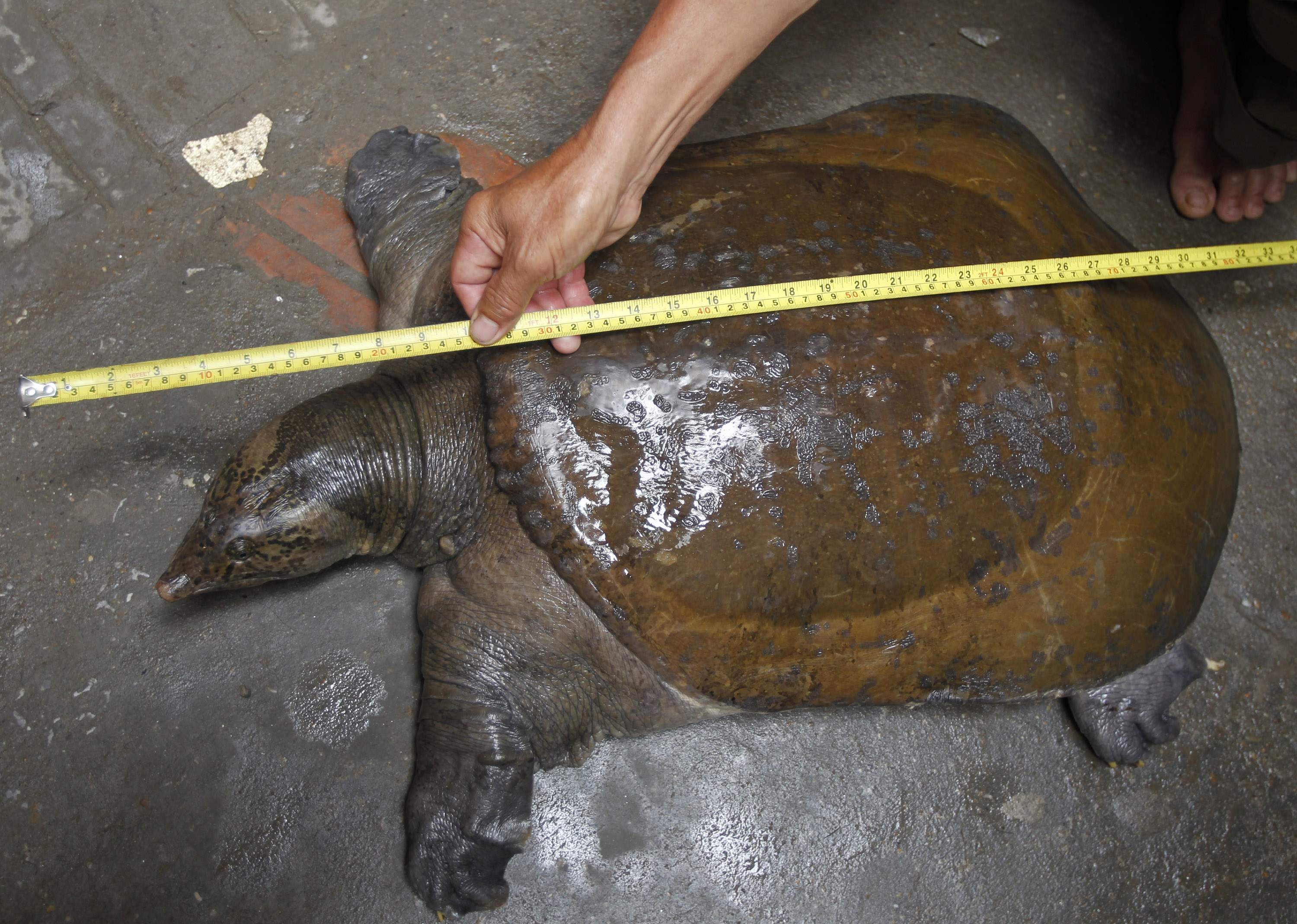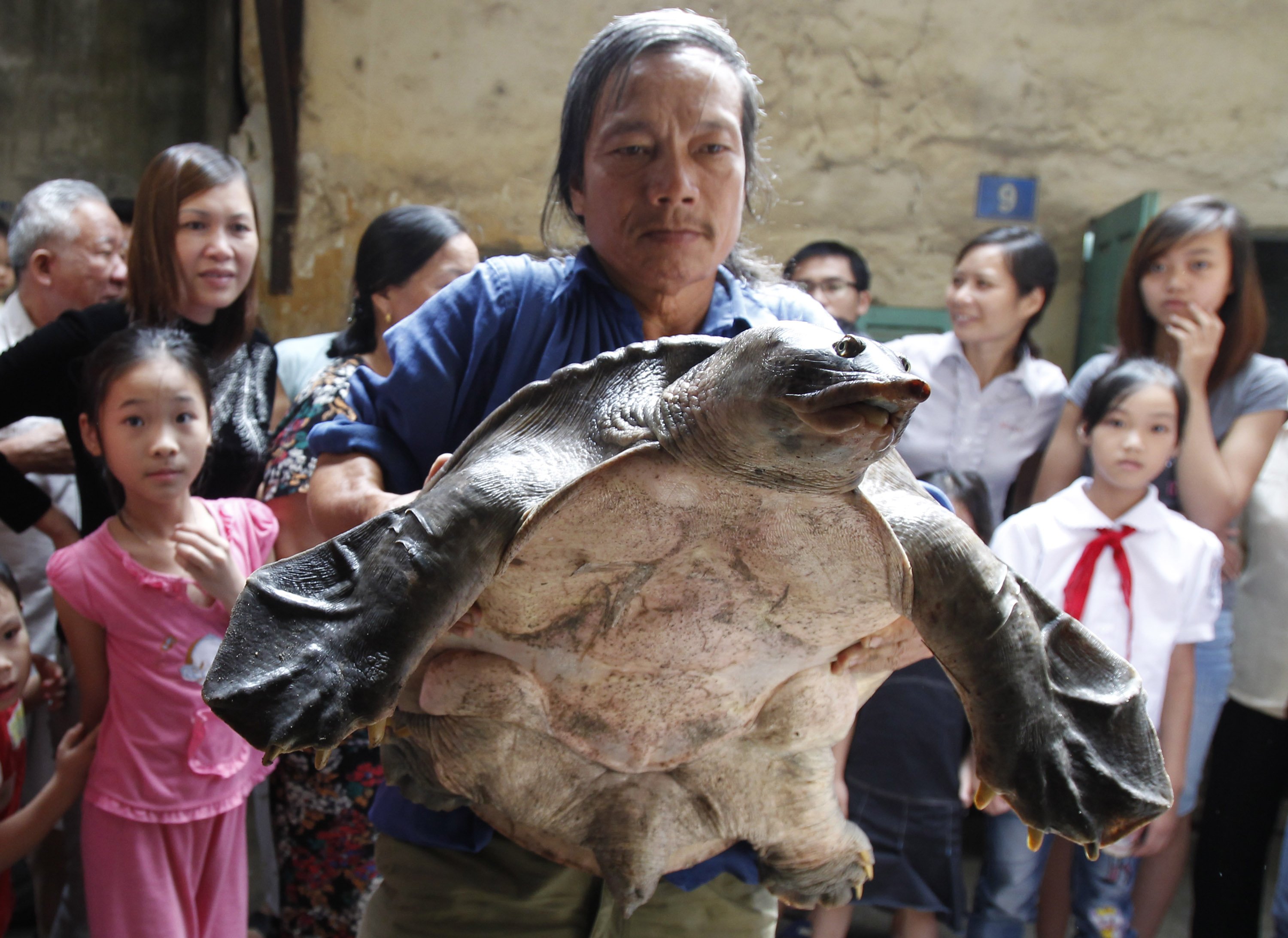 Ο ψαράς Nguyen Ba Toan ψάρευε στον Κόκκινο Ποταμό στο Ανόι του Βιετνάμ όταν, τραβώντας τα δίχτυα του, ανέσυρε μία σπάνια χελώνα.