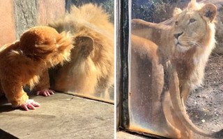 Ένα μωρό ντυμένο με στολή λιονταριού βρέθηκε μπροστά στον βασιλιά των ζώων σε ζωολογικό κήπο των ΗΠΑ. Το βίντεο που κάνει το γύρο του διαδικτύου δείχνει τον μικρό Aryeh να παίζει με το λιοντάρι το οποίο βρίσκεται πίσω από το προστατευτικό τζάμι.