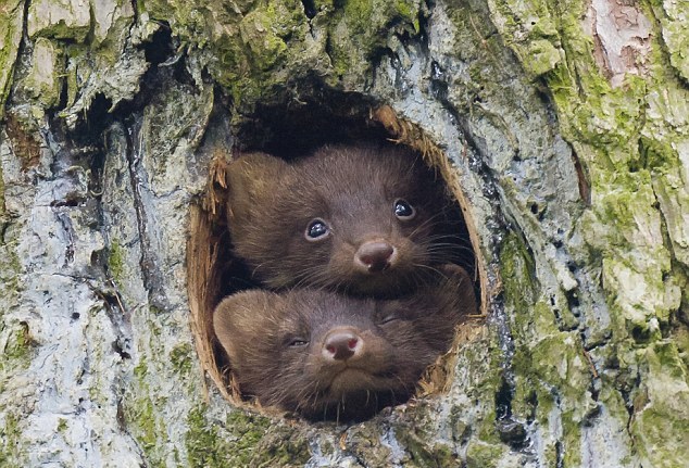Τα νεογέννητα κουνάβια είχαν καταλάβει τη φωλιά ενός δρυοκολάπτη πάνω σε ένα πεύκο στο εθνικό πάρκο Drents Friese Wold.