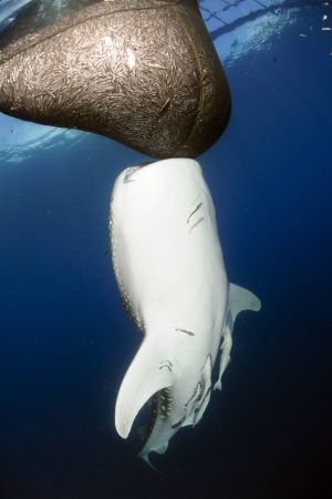 Τα 20 τόνων τεράστια θαλάσσια πλάσματα τοποθετούσαν τα στόματά τους κοντά στα δίχτυα και… ρουφούσαν τα ψαράκια από τις τρύπες στα δίχτυα.