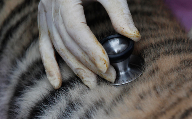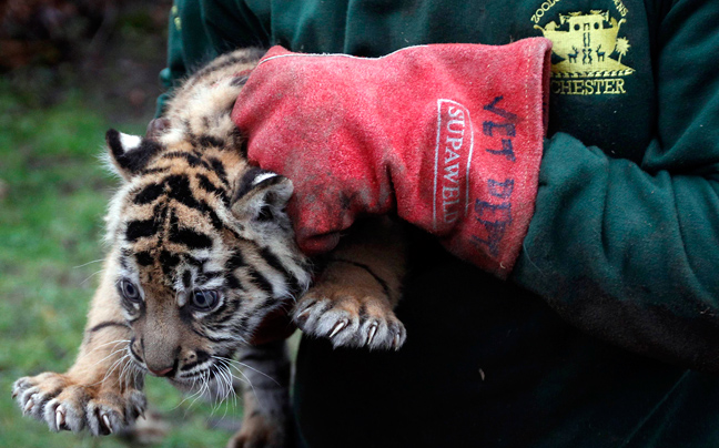 Με μόλις τετρακόσιες τίγρεις της Σουμάτρας να ζουν στη φύση, οι υπεύθυνοι του ζωολογικού κήπου του Τσέστερ στη Βρετανία ενθουσιάστηκαν με τον ερχομό των τριών μικρών που γεννήθηκαν τον Οκτώβριο σε αιχμαλωσία. Μετά τη φροντίδα της μαμάς τους, της πεντάχρονης Kirana, ήρθε η ώρα τα μικρά να γνωρίσουν και τον… κτηνίατρο.