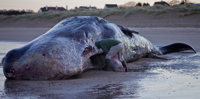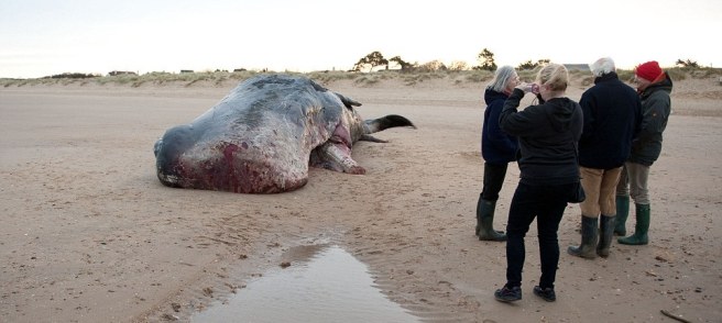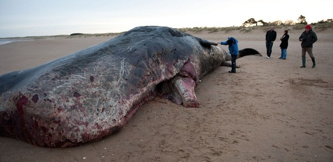 Το κουφάρι μιας νεκρής φάλαινας-φυσητήρα μήκους 12 μέτρων, είχε ξεβραστεί στην άμμο. Το κήτος έφερε μια μεγάλη πληγή στο στομάχι, ενώ το γεγονός ότι η άμμος κοντά στην ουρά του φαινόταν ανέγγιχτη, αποτελεί ένδειξη ότι είχε πεθάνει πριν η παλίρροια το ξεβράσει στην ακτή.