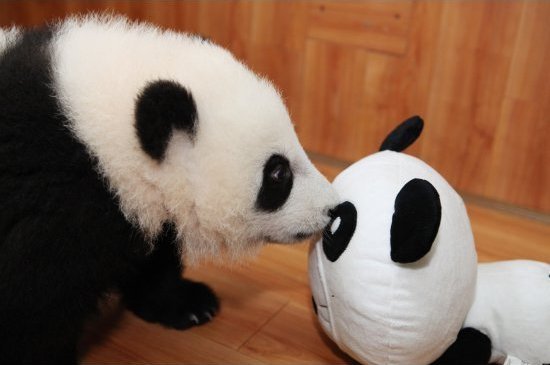 Τα μικρά πάντα στις παρακάτω φωτογραφίες ζουν στο κέντρο προστασίας και έρευνας Ya’an Bifengxia Base της Κίνας και απολαμβάνουν το παιχνίδι με το νέο τους… φίλο, ο οποίος τους μοιάζει καταπληκτικα!