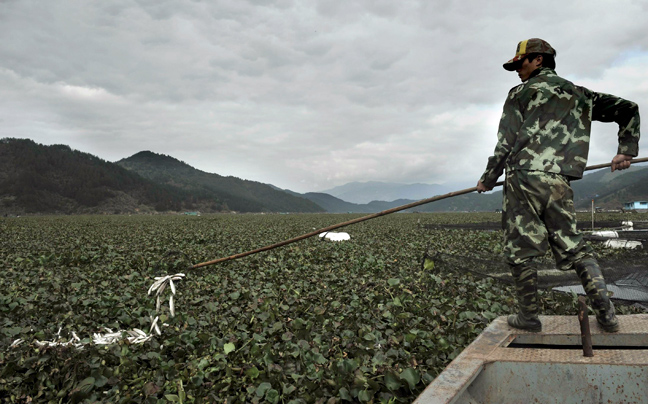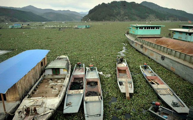 Τα ψάρια επιπλέον νεκρά στο ποταμό Μιντζιάνγκ στην επαρχία Φουτζιάν της Κίνας. Οι ιχθυοκαλλιέργειες στην περιοχή απειλούνται από τη μεγάλη ανάπτυξη των υάκινθων του νερού που άρχισε στις 16 Ιανουαρίου και συνεχίζεται.