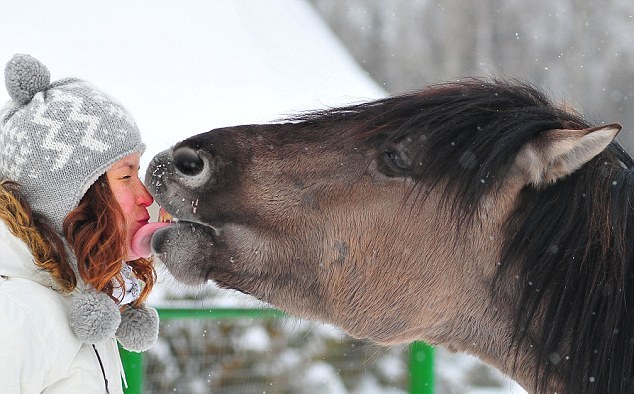 Στις φωτογραφίες φαίνεται να γιορτάζει το πρώτο του μάθημα με την ιδιοκτήτριά του Anna Popova, δίνοντάς της ένα μεγάλο φιλί.