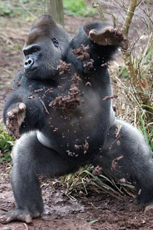 Ο γορίλας Kumbuka, ο οποίος ζυγίζει 177 κιλά πήρε με τις… πέτρες τους φωτογράφους. Ο ντροπαλός γορίλας πετάει μεγάλες πέτρες και λάσπη σε όποιον θέλει να τον φωτογραφίσει στο πάρκο Paignton στο Devon της Αγγλίας.