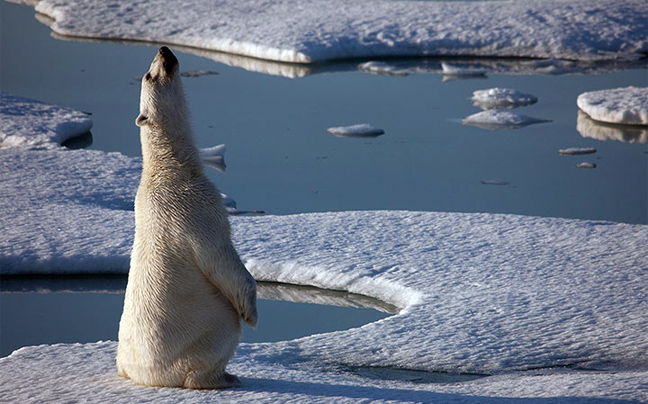 Το λιώσιμο των πάγων, λόγω της υπερθέρμανσης του πλανήτη, και η καταστροφή των οικοτόπων ασκούν πολύ σοβαρές πιέσεις στον πληθυσμό των πολικών αρκούδων, που έχει μειωθεί δραματικά.