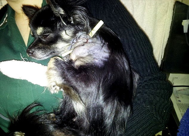 Η Ριβς έτρεξε στον κτηνίατρο ο οποίος έκανε στο σκύλο ράμματα και του χορήγησε αντιβίωση. Το τσιουάουα έμεινε στην ανάρρωση για τρεις ημέρες.