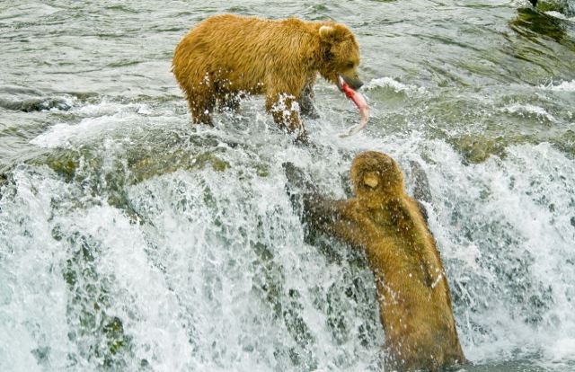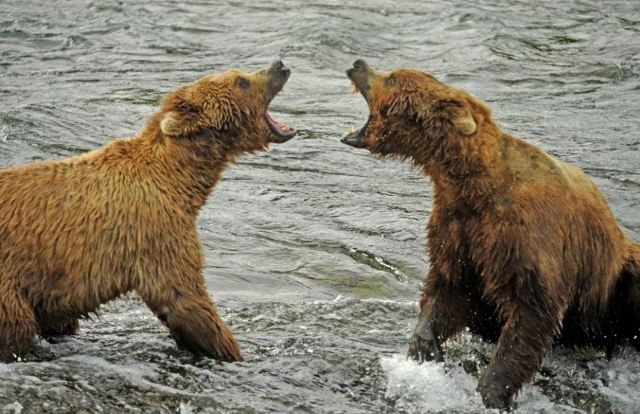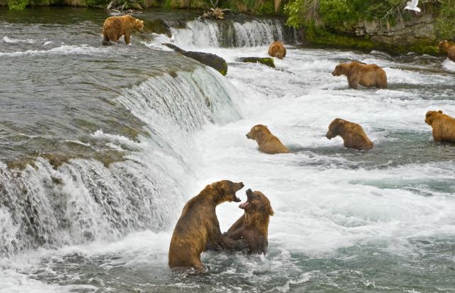 Οι μεγάλες αρκούδες ζουν μακριά η μία από την άλλη αλλά την κατάλληλη εποχή συναντιούνται όλες μαζί στα ποτάμια της Αλάσκας… περιμένοντας τους σολομούς!
