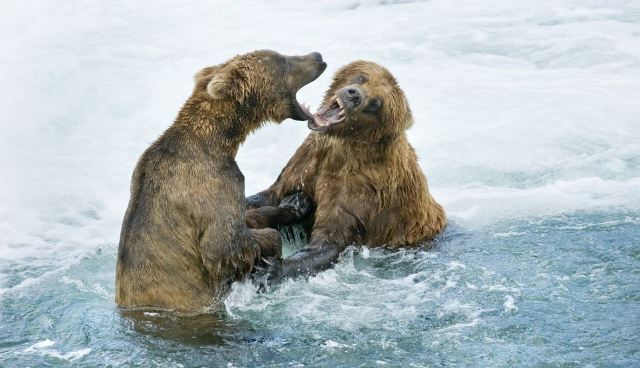 Τις εντυπωσιακές φωτογραφίες έχει τραβήξει ο Ami Vitale στο Brooks Fall της Αλάσκας, που βρίσκεται εντός του εθνικού πάρκου Katmai.