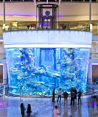 Το ενυδρείο φιλοξενεί έναν αληθινό ύφαλο και μια ευρεία γκάμα ψαριών, ακόμα και καρχαρίες. Έχει φτιαχτεί σε ειδική βάση και με αυστηρές προδιαγραφές έτσι ώστε να αντέχει σε σεισμούς.