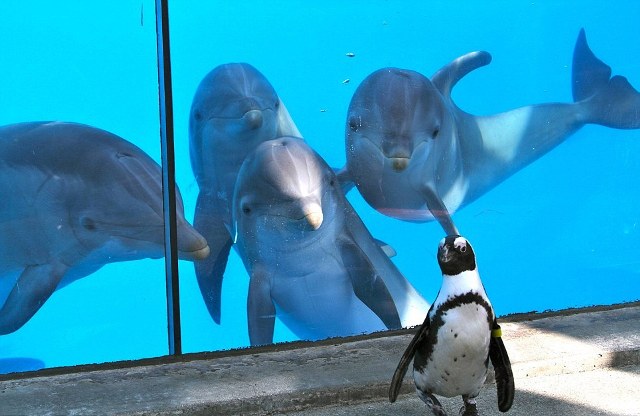 Ο συμπαθής πιγκουίνος στις παρακάτω φωτογραφίες περπατούσε αμέριμνος μπροστά από τις πισίνες ενός θαλάσσιου πάρκου στο Vallejo, κοντά στο Σαν Φρανσίσκο.