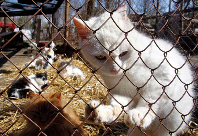Περίπου 1.600 αδέσποτα σκυλιά και γάτες φιλοξενούνται σε ιδιωτικό καταφύγιο στην περιοχή Σίριους εξήντα χιλιόμετρα βορειοδυτικά του Κίεβου. Ήταν από τα τυχερά που γλίτωσαν τη σφαγή που καταγγέλλουν οι οργανώσεις για τα δικαιώματα των ζώων ενόψει της διοργάνωσης του Ευρωπαϊκού Πρωταθλήματος ποδοσφαίρου το καλοκαίρι.