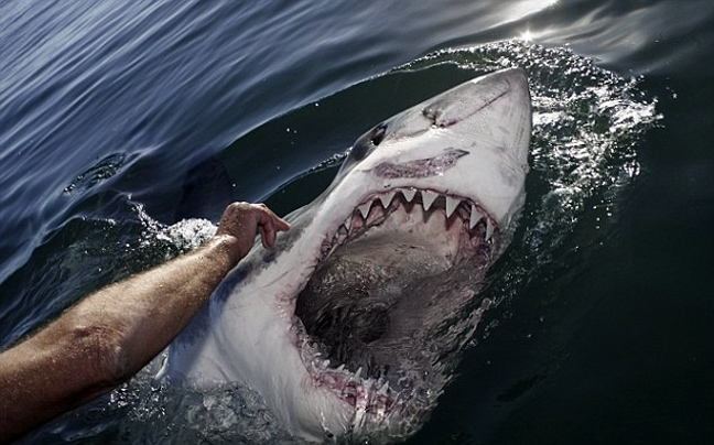 Με μια πρώτη ματιά, αυτός ο λευκός καρχαρίας φαίνεται έτοιμος να κατασπαράξει το χέρι του απεικονιζόμενου ανθρώπου. Ωστόσο, αυτός ο άγριος θηρευτής, μήκους πέντε μέτρων, αγνοεί πλήρως το ένστικτο του, καθώς βρίσκεται σε μια κατάσταση πλήρους… νιρβάνας!
