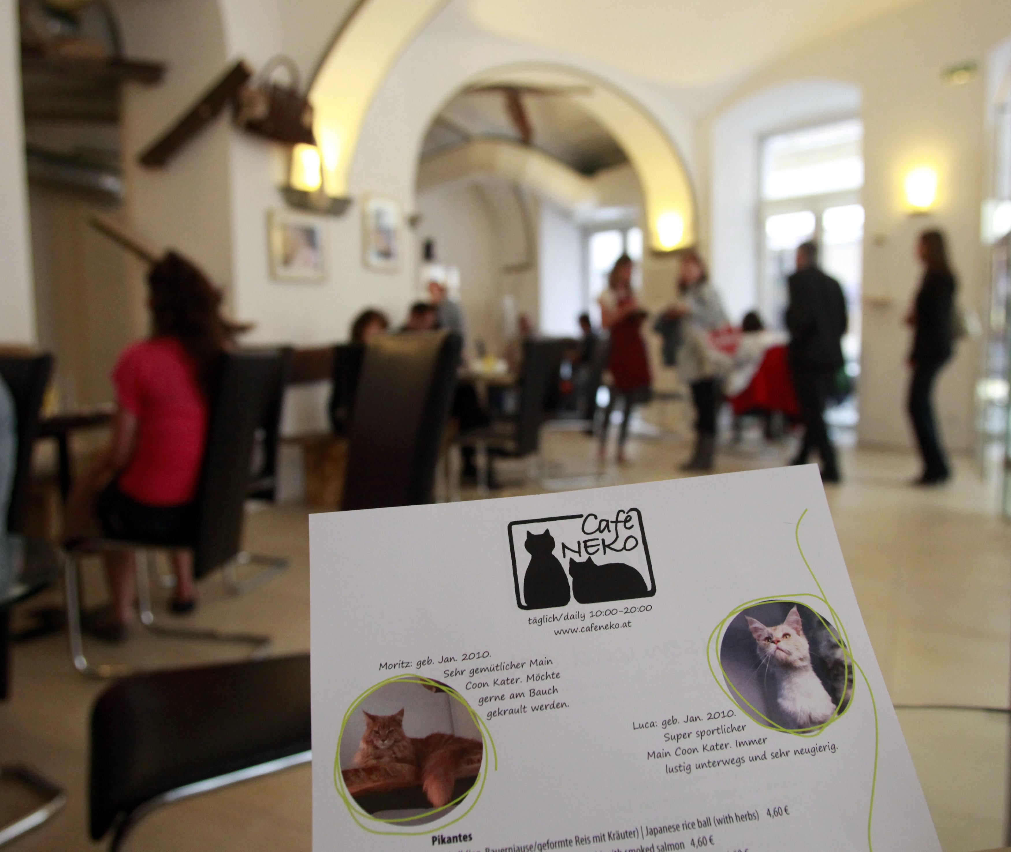Έπειτα από τρία χρόνια διαπραγματεύσεων με τις αυστριακές αρχές για θέματα υγιεινής, η Γιαπωνέζα κάτοικος Βιέννης Takako Ishimitsu άνοιξε το πρώτο γατο-καφέ με το όνομα «Cafe Neko»- Neko είναι η γιαπωνέζικη λέξη για τη γάτα.