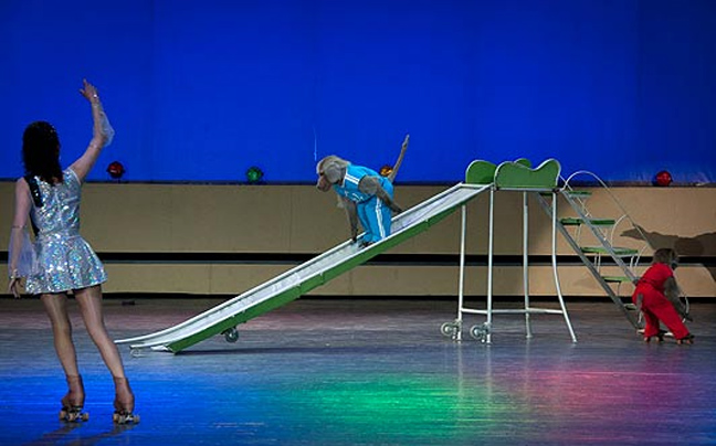 Οι αρκούδες πιάνονται στα δάση της Βόρειας Κορέας και εκπαιδεύονται για το σόου. Άγνωστη παραμένει η προέλευση των μπαμπουίνων.