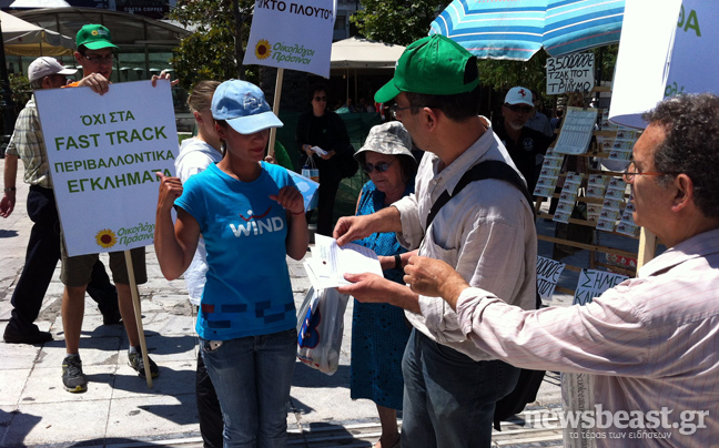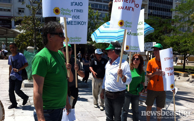 «Η διαχρονική υποβάθμιση των ζητημάτων περιβάλλοντος και ποιότητας ζωής στη συζήτηση για τις προοπτικές της χώρας και για τις επιθέσεις στο περιβάλλον στο πλαίσιο των πολιτικών του μνημονίου» είναι βασικότεροι λόγοι της διαμαρτυρίας των Οικολόγων.