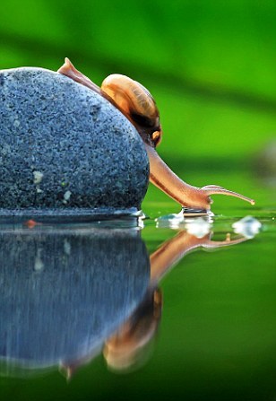Ανεκτίμητης αξίας είναι η φροντίδα της μητέρας και αυτό δεν ισχύει μόνο για τους ανθρώπους. Το κατάλληλο μεταφορικό μέσο βρήκε ένα μικροσκοπικό σαλιγκάρι στο νησί Batam της Ινδονησίας. Το μικρό σκαρφάλωσε στο καβούκι της μητέρας του και την πανέμορφη εικόνα αιχμαλώτισε ο φωτογραφικός φακός του 33χρονου Uda Dennie.