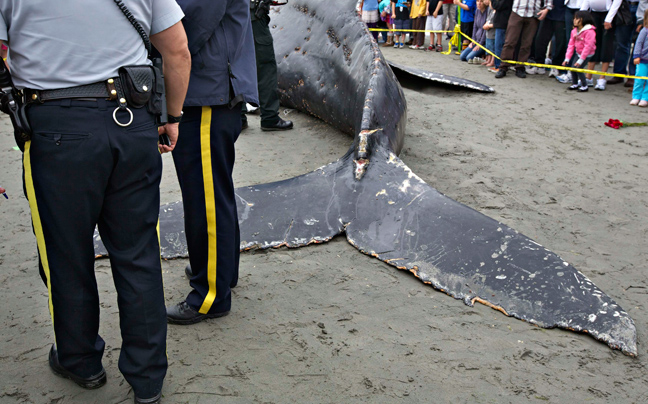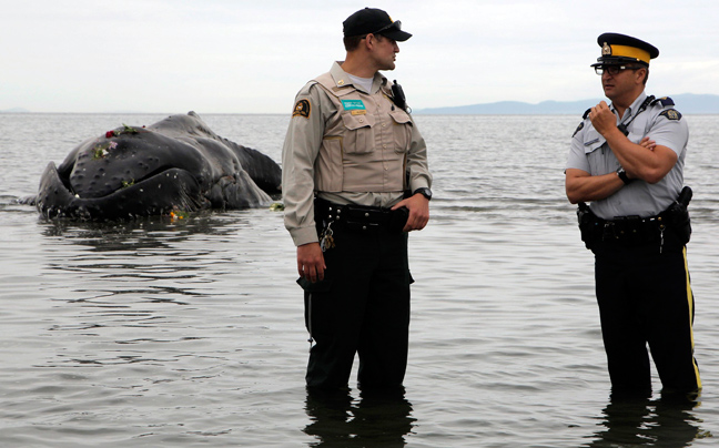 Με τραύματα στο σώμα της μία φάλαινα βγήκε στην ακτή στην περιοχή White Rock στον Καναδά. Το άτυχο κήτος ήταν ζωντανό όταν εντοπίστηκε από τους άνδρες της αρμόδιας καναδικής υπηρεσίας αλλά λίγο αργότερα εξέπνευσε.