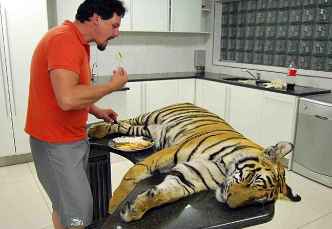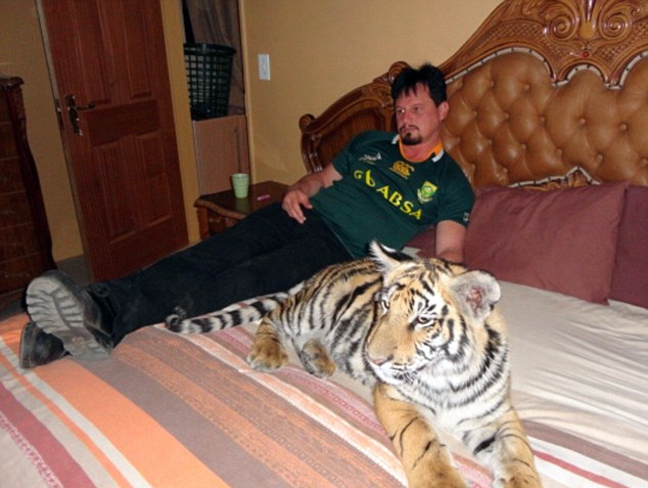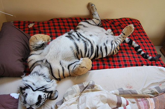 Νέες φωτογραφίες αλλά κι ένα βίντεο από την καθημερινότητα του Enzo, της τίγρης που ζει στη Νότιο Αφρική ως κατοικίδιο, ήρθαν σήμερα στη δημοσιότητα. Θέλει να τραβάει την προσοχή, του αρέσει να χουζουρεύει στο κρεβάτι του και ξύνει τα νύχια του στα έπιπλα. Δεν είναι όμως μία συνηθισμένη γάτα αλλά μία τίγρη της Βεγγάλης ηλικίας ενός έτους και με βάρος σχεδόν 170 κιλά!