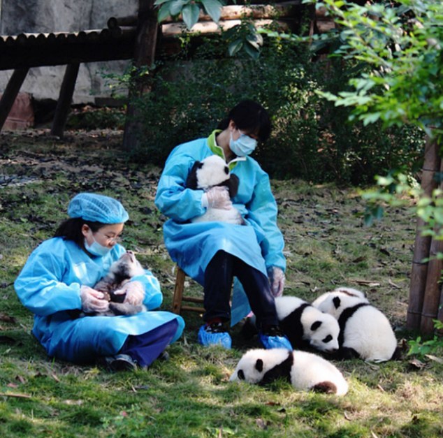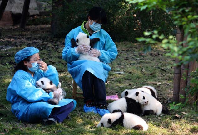 Ζουν στο πάρκο Giant Panda Research Base στο Chengdu, στην επαρχία Sichuan της Κίνας και οι υπάλληλοι του πάρκου τα έδειξαν στους επισκέπτες, στο πλαίσιο μιας προσπάθειας συγκέντρωσης πόρων για το ερευνητικό τους κέντρο.
