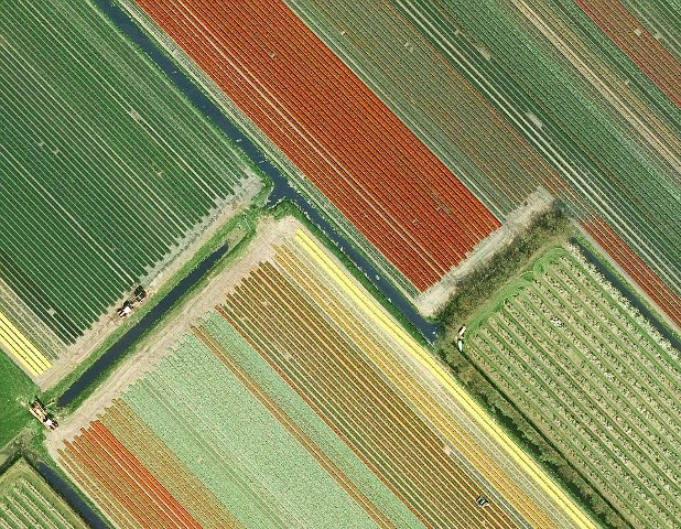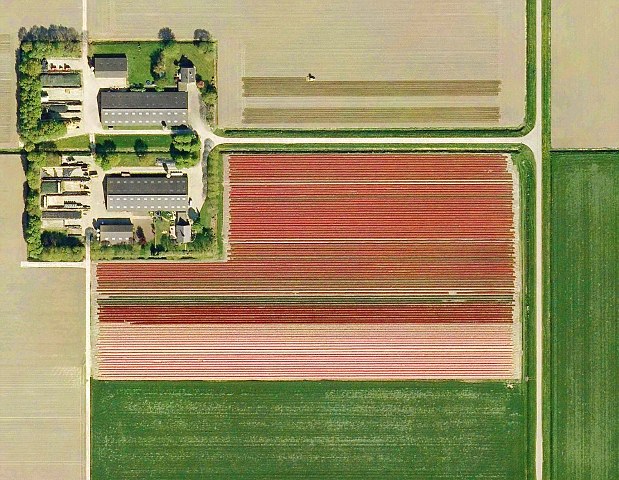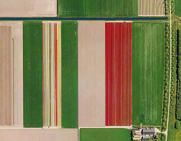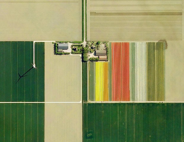Με την πρώτη ματιά πιστεύει κανείς ότι πρόκειται για πίνακες ζωγραφικής. Κι όμως είναι αεροφωτογραφίες, που τράβηξε ο καλλιτέχνης Mishka Henner από διάφορες περιοχές της Ολλανδίας, όπου καλλιεργούνται οι διάσημες… τουλίπες!