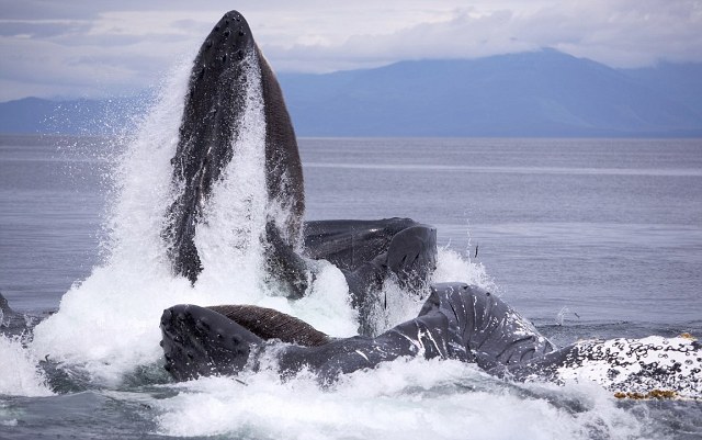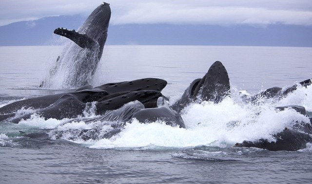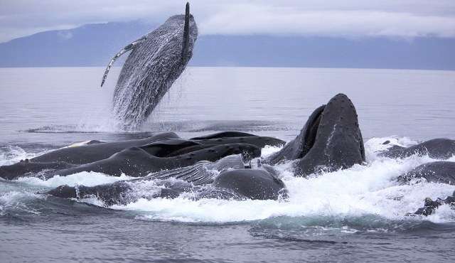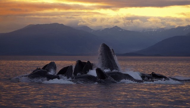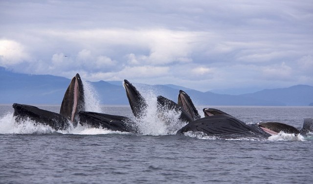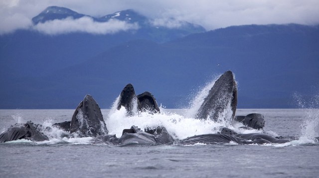 Ο φωτογράφος Jon Cornforth απαθανάτισε με τη μηχανή του μια ομάδα φαλαινών να κυνηγά την… ψαριά της στη θαλάσσια περιοχή Frederick Sound στον Ειρηνικό Ωκεανό, κοντά στην Αλάσκα.