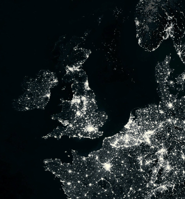 Τη νύχτα, το Λονδίνο μοιάζει με μία «φλεγόμενη» κουκκίδα, καταναλώνοντας ενέργεια τόση που θα μπορούσε να φωτίσει την Ιρλανδία.