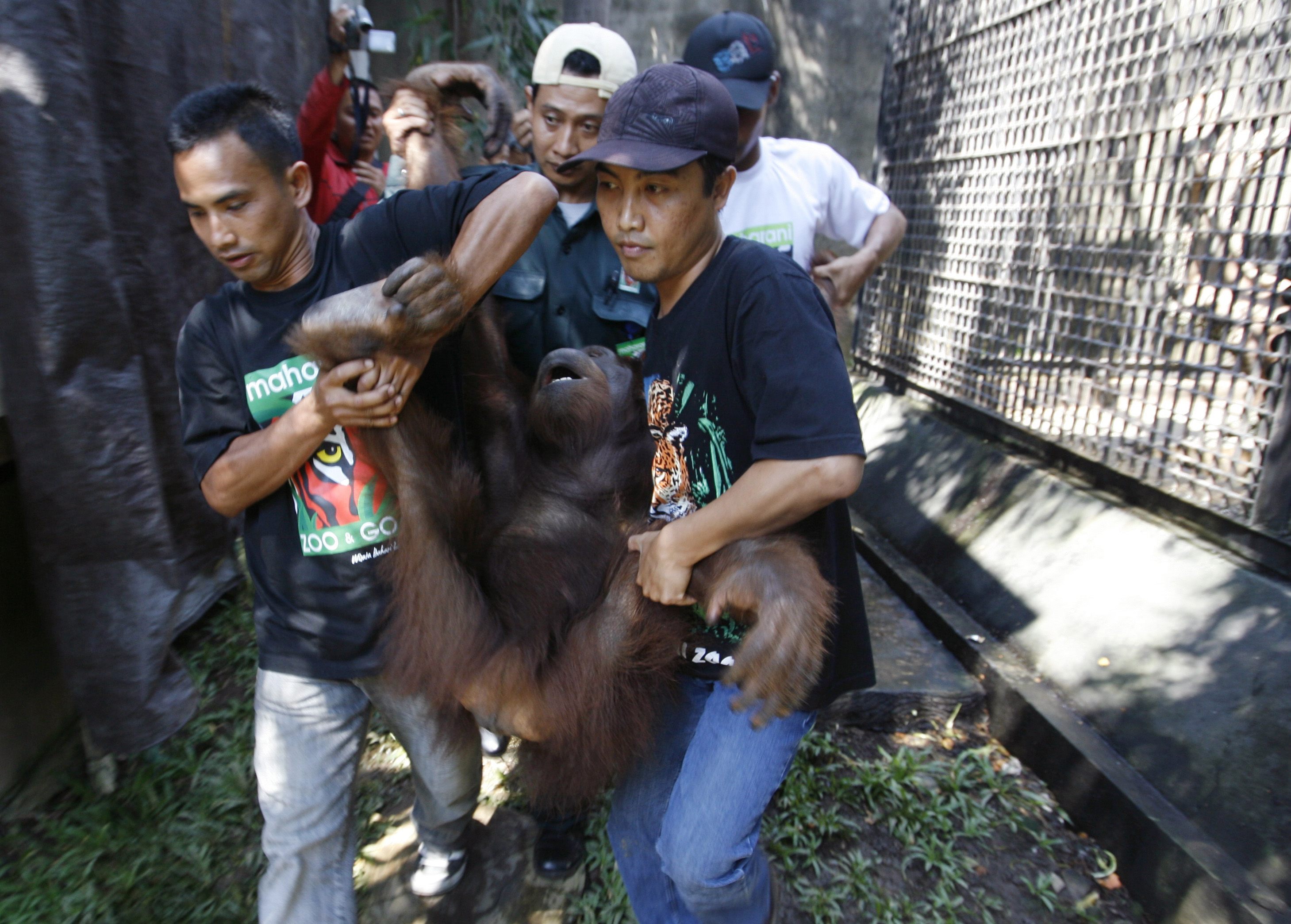 Από μηχανής θεοί ήταν για δύο ουρακοτάγκους στην Ιάβα της Ινδονησίας η αστυνομία και ακτιβιστές για τα δικαιώματα των ζώων.