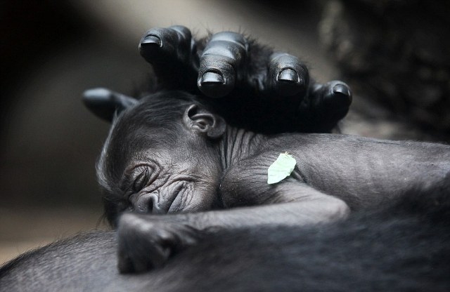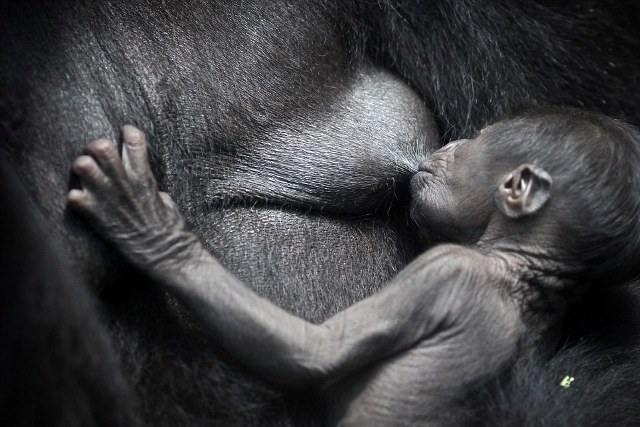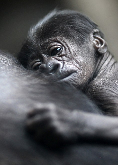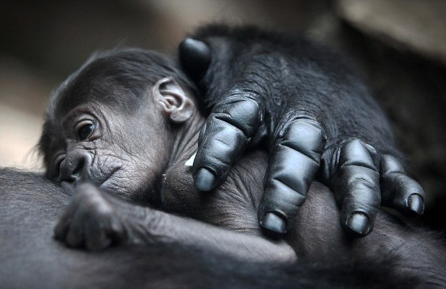 Κουρνιάζει ήρεμο στην αγκαλιά της μεγαλόσωμης μαμάς του και νιώθει τόσο γαλήνια στα χέρια της. Ο μικρός γορίλας γεννήθηκε στο ζωολογικό κήπο της Φρανκφούρτης το πρωί της Πέμπτης και είναι το όγδοο μικρό που φέρνει στον κόσμο η 29χρονη Rebecca.