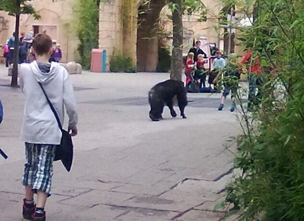 Αφού πέρασαν τον τοίχο, οι μακρινοί μας πρόγονοι θέλησαν να δοκιμάσουν την ζωή πέρα από το φράχτη, διαταράσσοντας τους 2.500 επισκέπτες. Τραυμάτισαν, μάλιστα, ελαφρά έναν ηλικιωμένο και ένα πεντάχρονο κορίτσι, προτού εκκενώσουν τον χώρο οι υπάλληλοι του πάρκου και 27 περιπολικά της αστυνομίας.